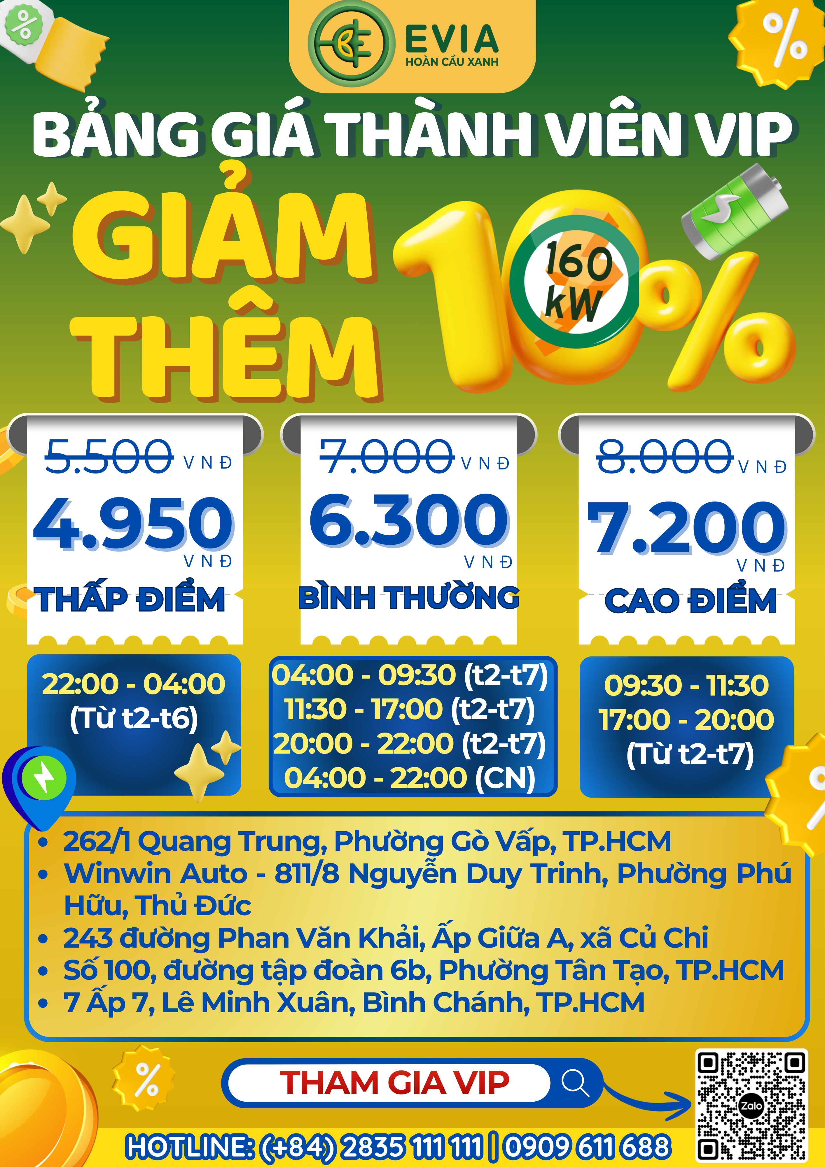 Cộng đồng tài xế xe điện và anh em chạy dịch vụ đang "truyền tai" nhau tin vui chấn động: Hệ thống trạm sạc EVIA Hoàn Cầu Xanh vừa chính thức công bố chính sách giá mới. Theo đó, thành viên VIP sẽ được hưởng mức ưu đãi giảm thêm 10% cực sâu, giúp bài toán chi phí nhiên liệu trở nên "nhẹ gánh" hơn bao giờ hết.