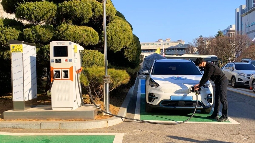 Một người đang sạc xe tại Hàn Quốc. Ảnh: Koreatimes