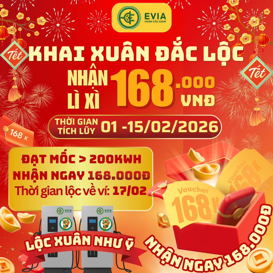 Trong văn hóa Việt Nam, lì xì đầu năm không chỉ là tiền bạc mà còn là lời chúc may mắn. Với EVIA, chúng tôi mong muốn mỗi lần sạc xe không chỉ là nạp năng lượng cho phương tiện mà còn là nạp "lộc" cho các bác tài.