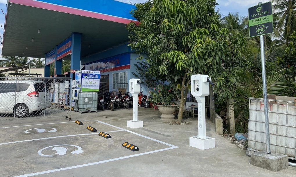 Trạm sạc của bên thứ 3 tại trạm xăng. Ảnh: EV One