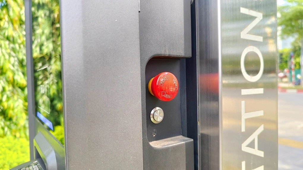 Nút dừng khẩn cấp trên một trụ sạc tại Hà Nội. Ảnh: Lương Dũng